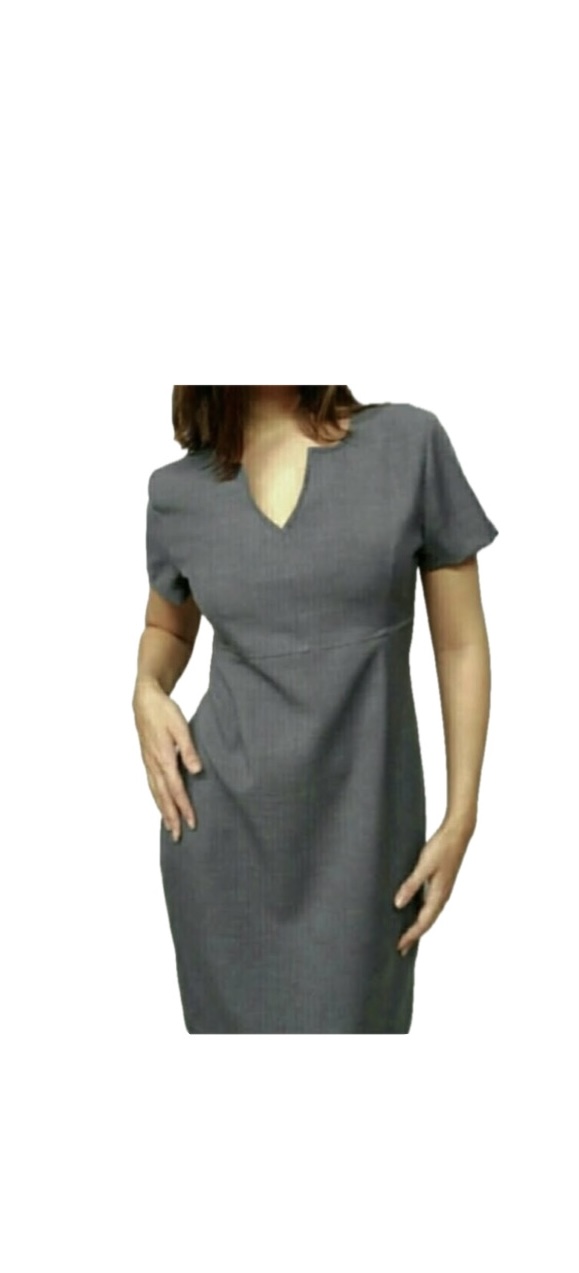 Vestido de corte imperio con mangas y cuello corte V. En Melange, Lavable a máquina. Color: Charcoal grey. Tallas del 4 al 24.